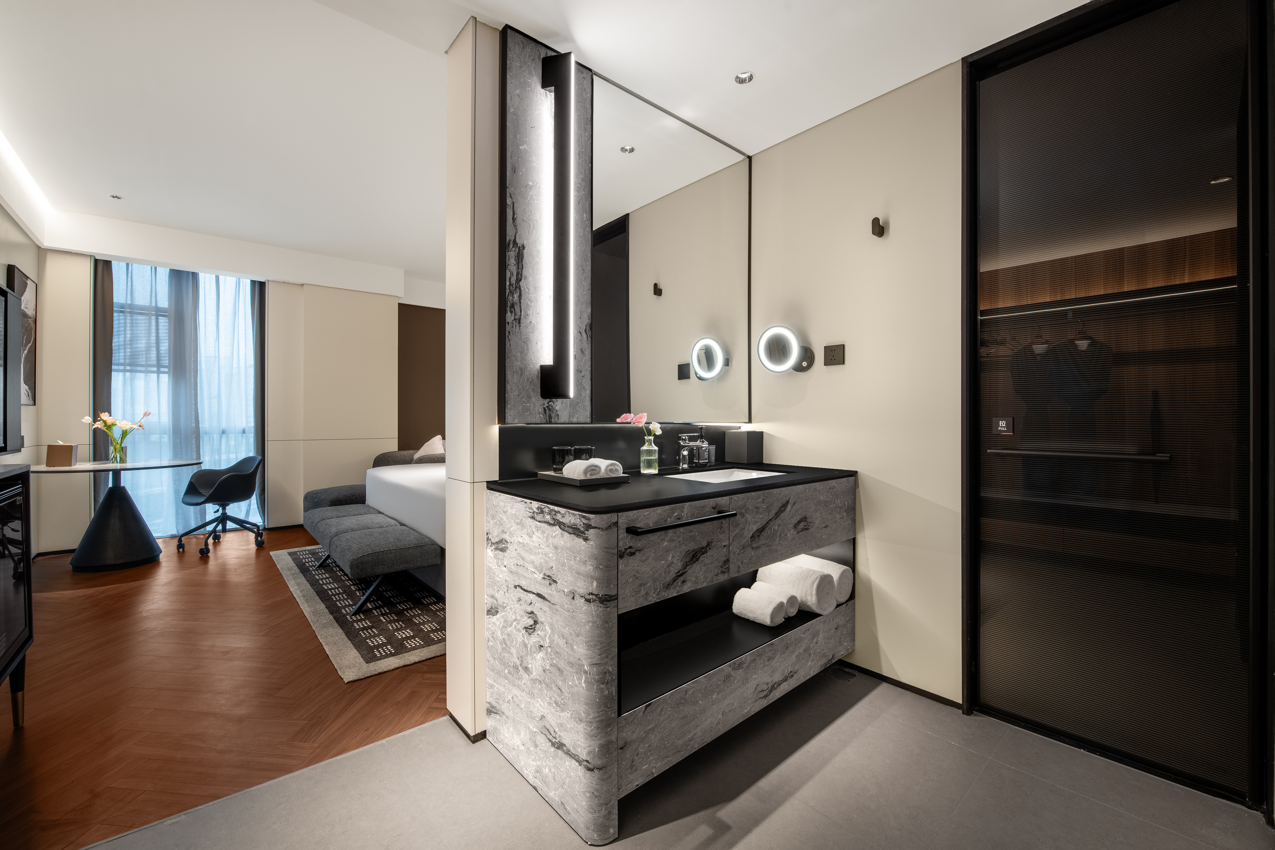 城际大床房(落地窗+全屋智能+雨淋顶喷+丝涟床垫)