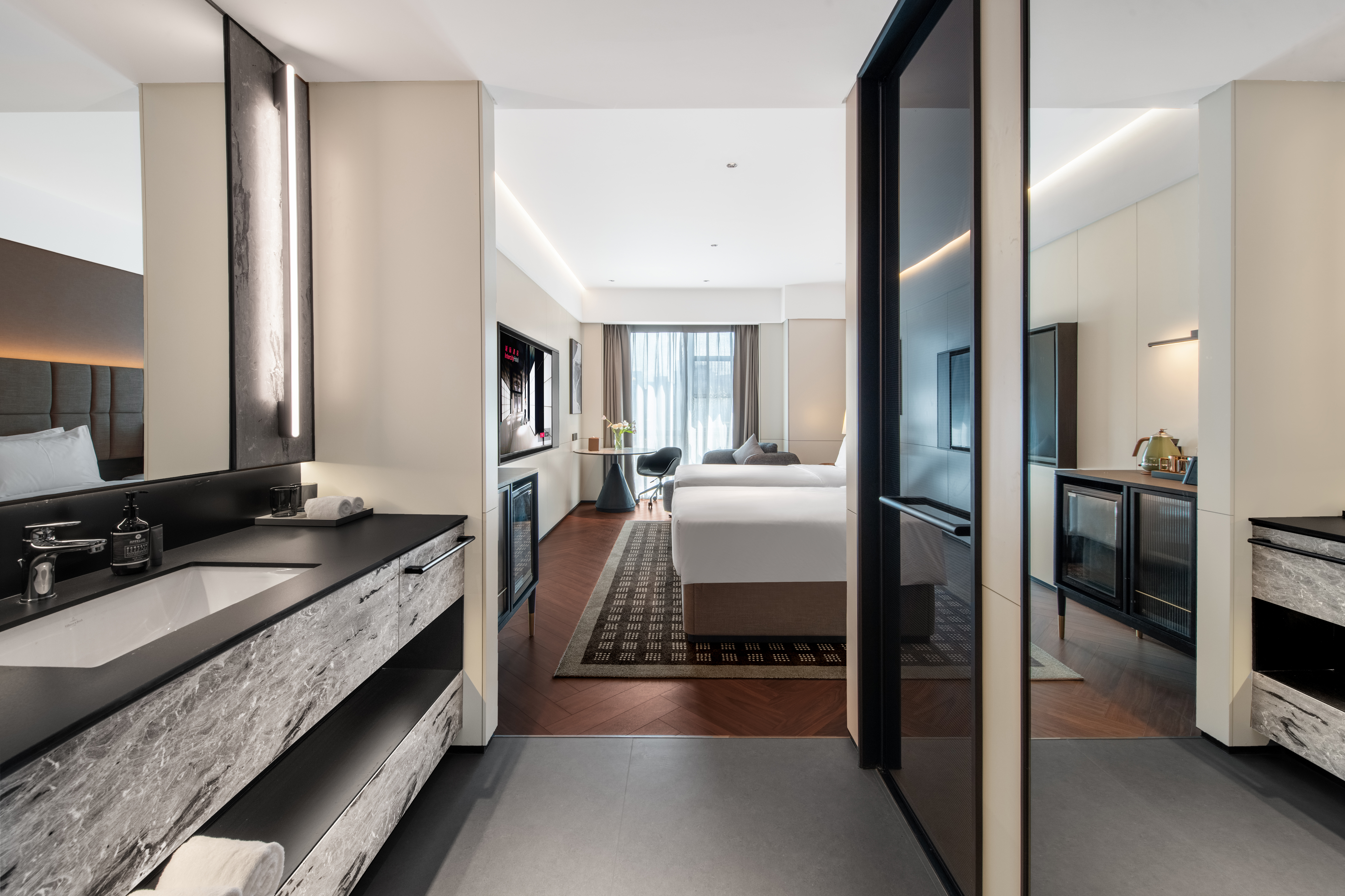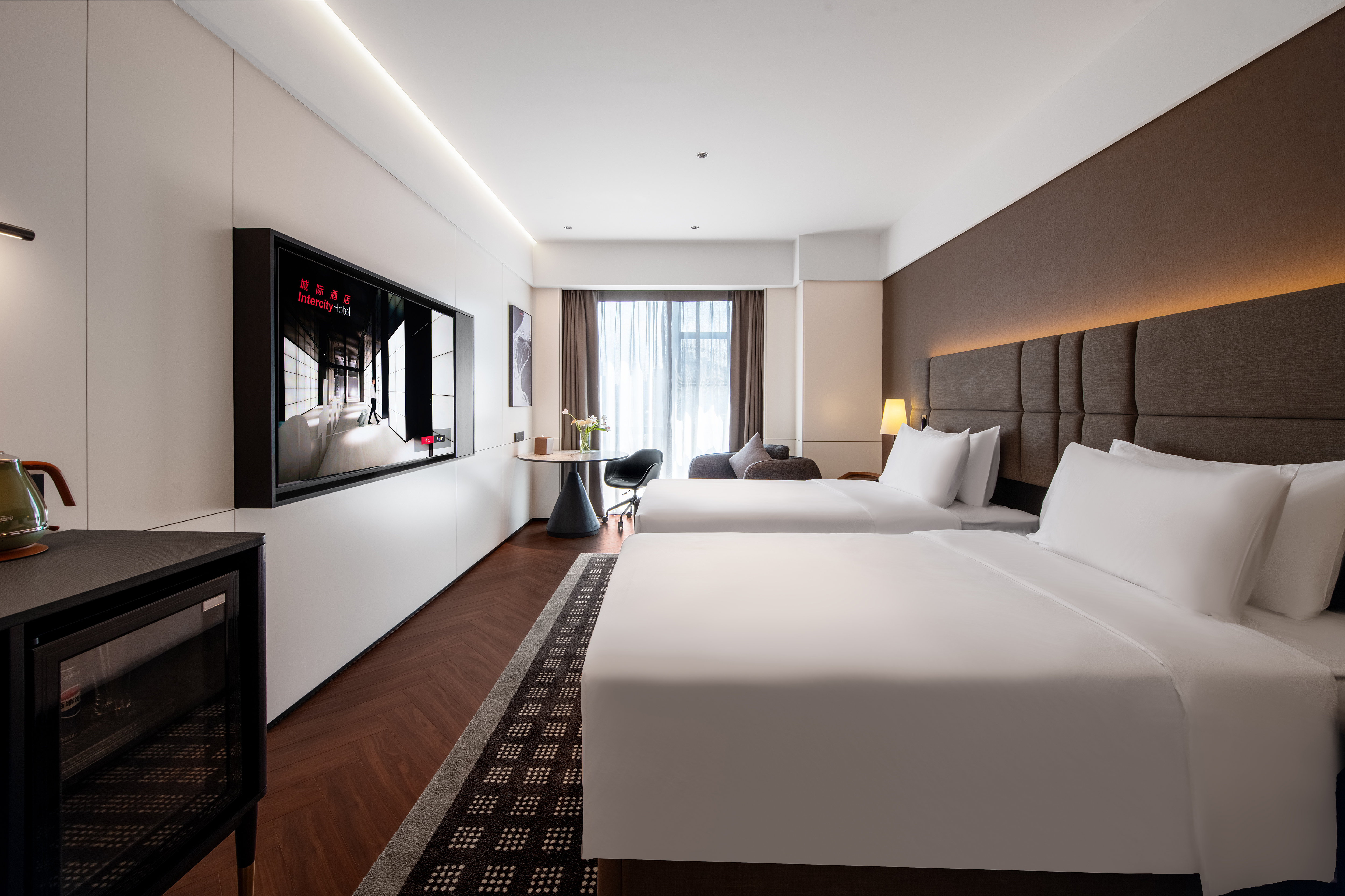 城际高级双床房(落地窗+丝涟床垫+全屋智能+雨淋顶喷)